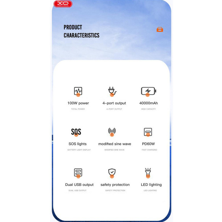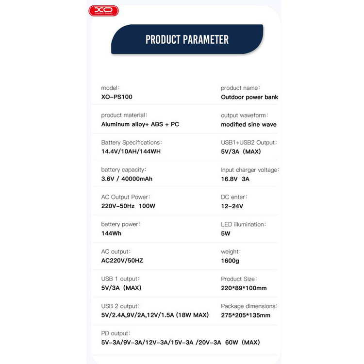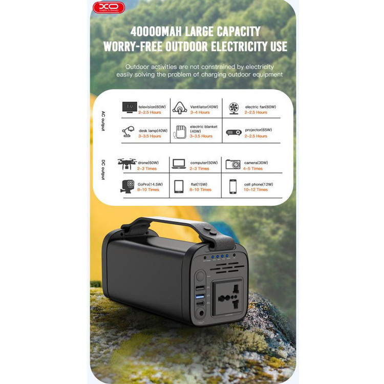پاوربانک ایکس او مدل ps100c ظرفیت 40000 میلی آمپر ساعت