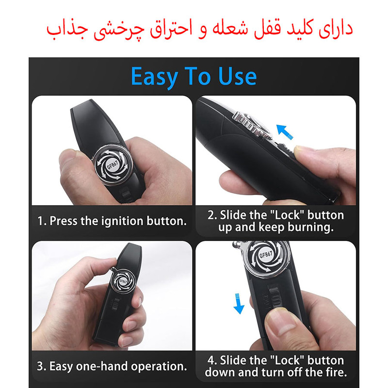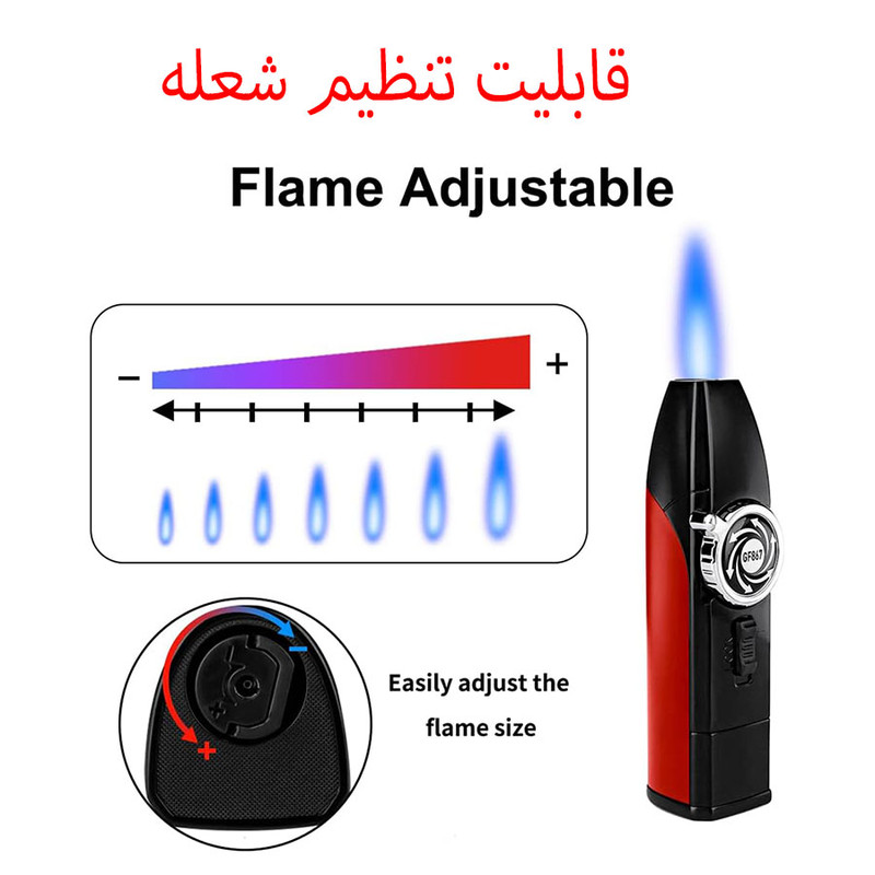 - محصولی بسیار بسیار با کیفیت و خوش ساخت - دارای شعله بسیار قوی قابل سوراخ کردن انواع ورقه های نازک و ضخیم - احتراق هندلی - قابل تنظیم ضعله - دارای کلید قفل شعله