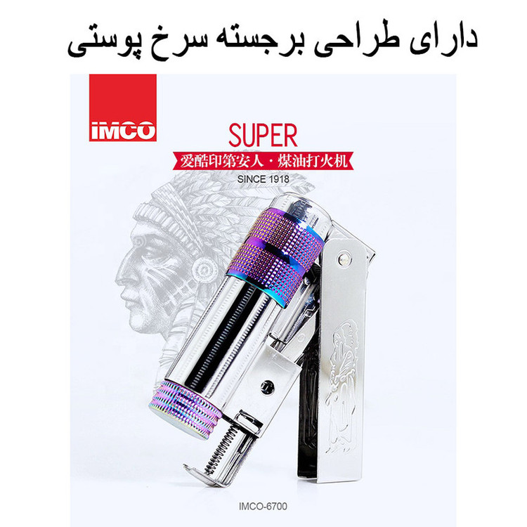 فندک بنزینی ایمکو مدل اتومات و ضد باد طرح سرخپوستی