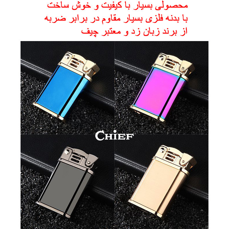 فندک های بنزینی اتوماتیک Chief با بنزین کار میکنند و قابلیت شارژ مجدد سوخت را دارا میباشند.این فندک ها چخماق اتوماتیک داشته و از قابلیت Windproof نیز برخوردارند.بر طبق این ویژگی شعلهی فندک شما ضد باد بوده و به راحتی خاموش نخواهد شد.از جمله ویژگی های کاربردی دیگر در این فندک ها میتوان به داشتن قفل برای باز شدن فندک اشاره کرد.فندک های بنزینی Chief روکش بدنه براق داشته و از تنوع رنگی بالایی برخوردارند.براین اساس شما میتوانید این فندک را با هر کدام از رنگ های زیبا و پرطرفدار طلایی مات، مشکی براق، نقره ای یا هفت رنگ / هلوگرمی سفارش دهید.