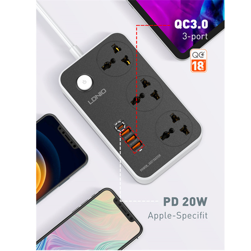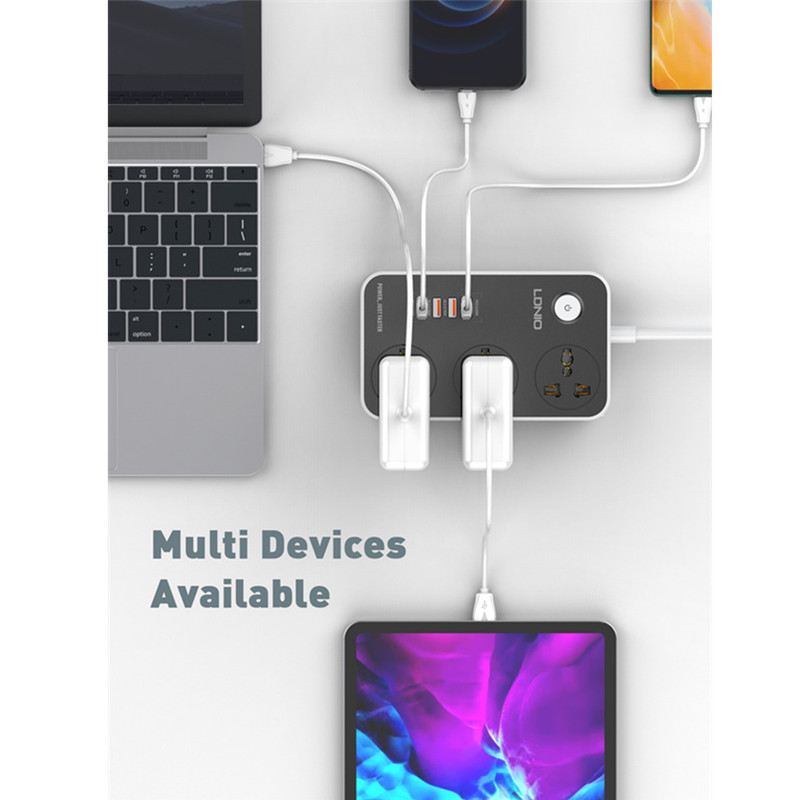 3 پورت USB-A مجهز به فناوری شارژ سریع Quick Charge 3.0 و یک پورت USB-C با پشتیبانی از Power Delivery 3.0 که دو به دو شیر شده