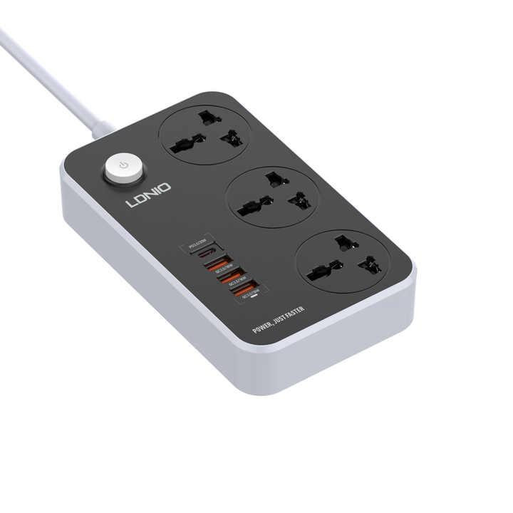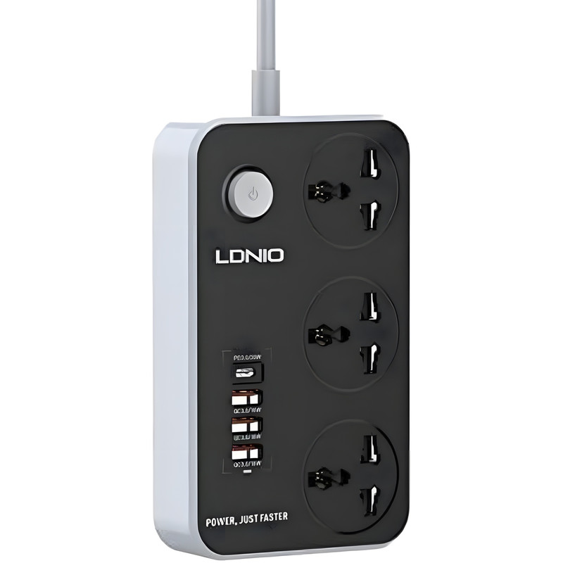 سه پریز به همراه محافظ کودک و چهار پورت USB