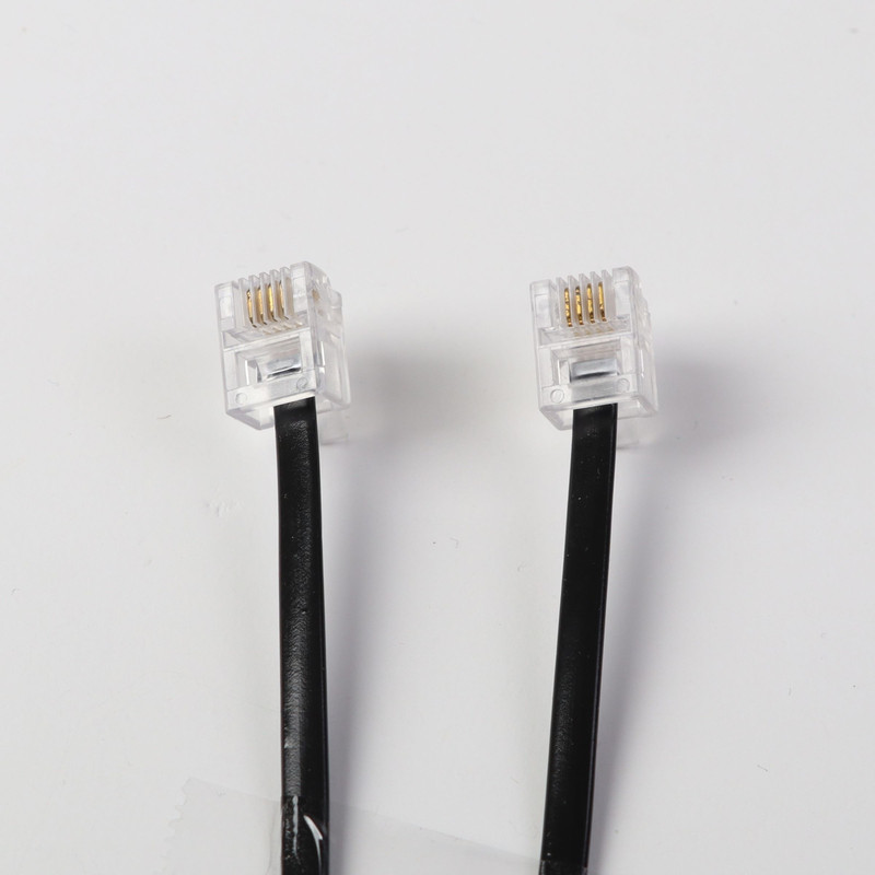 - سیم تلفن دو سر سوکت رنگ مشکی , مناسب اتصال خط تلفن به تلفنهای رومیزی و بیسیم , 4 پین , کیفیت سیم بسیار بالا