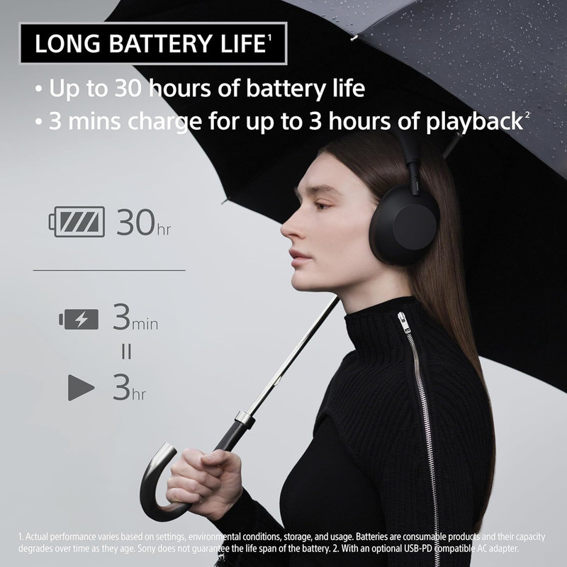 تا ۳۰ ساعت با روشن بودن قابلیت حذف نویز (ANC) و تا ۴۰ ساعت با خاموش بودن ANC