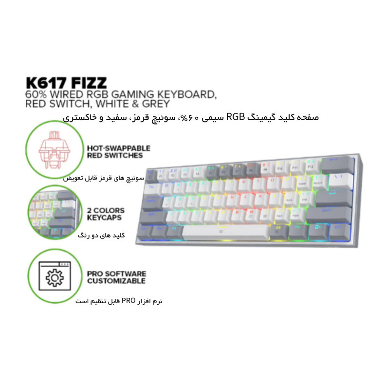 کیبورد مخصوص بازی ردراگون مدل K617 FIZZ RED SWITCH