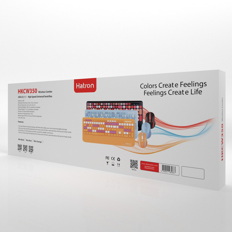 کیبورد و ماوس بی سیم هترون مدل HKCW350، سوییچ ممبران، Full-Size