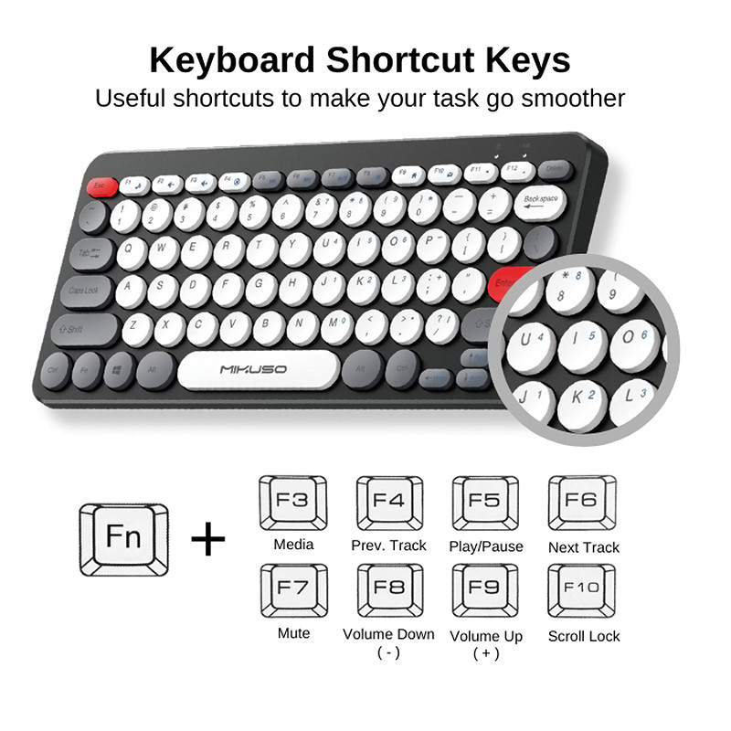 کیبورد و ماوس بی سیم میکاسو KB-CO27 مناسب برای استفاده های روزمره در محیط کار و منزل بوده و دارای طراحی ارگونومیک و خوش دست با دکمه های روان می باشد. جنس بدنه ماوس و کیبورد از پلاستیک با کیفیت بوده و با طراحی ارگونومیک در استفاده طولانی مدت شما را خسته نخواهد کرد. تعداد کلیدهای کیبورد 78 عدد، دارای کلید های مولتی مدیا و کلید ترکیبی Fn می باشد. این محصول به صورت بیسیم و از طریق دانگل USB به سیستم متصل می شود و حداکثر برد بیسیم آن 10 متر می باشد. تعداد کلیدهای ماوس 3 عدد شامل کلیک چپ و راست و کلید اسکرول بوده و مجهز به حسگر اپتیکال با میزان دقت 1600 نقطه بر اینچ می باشد.