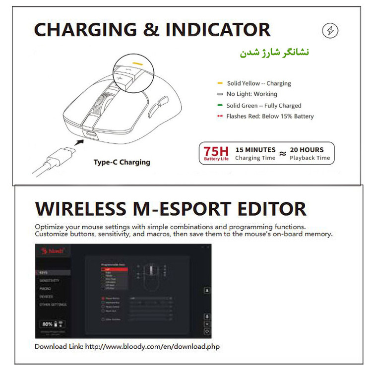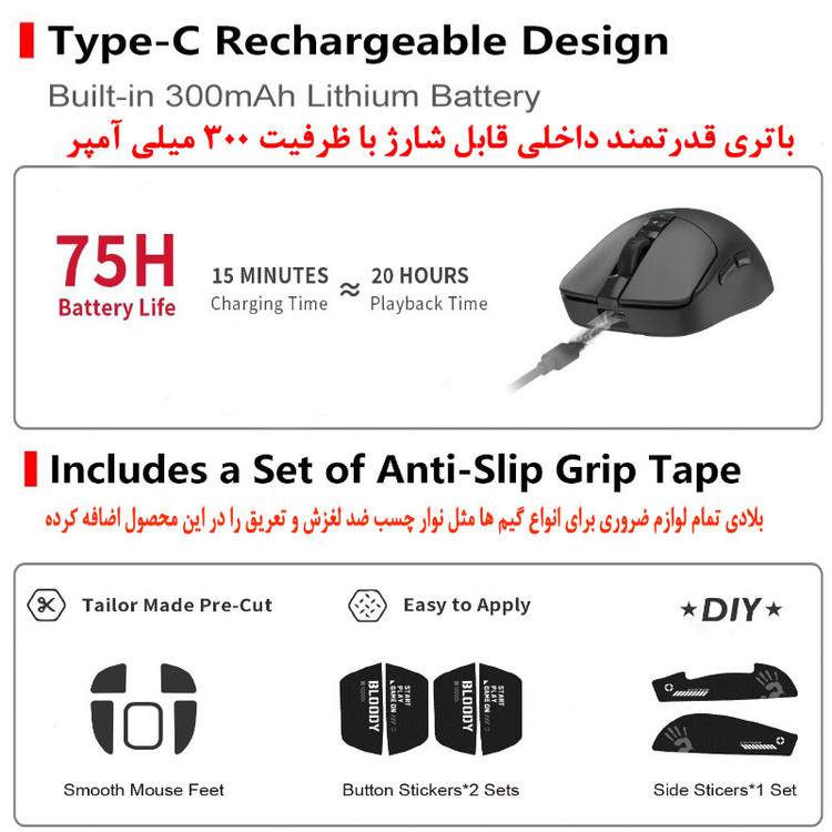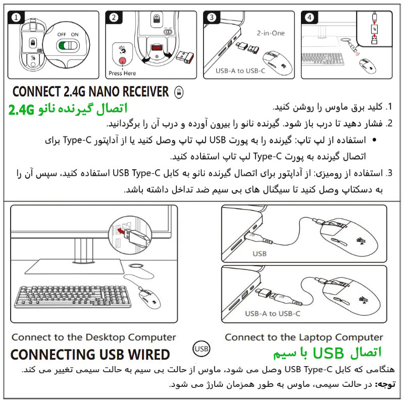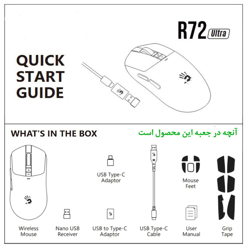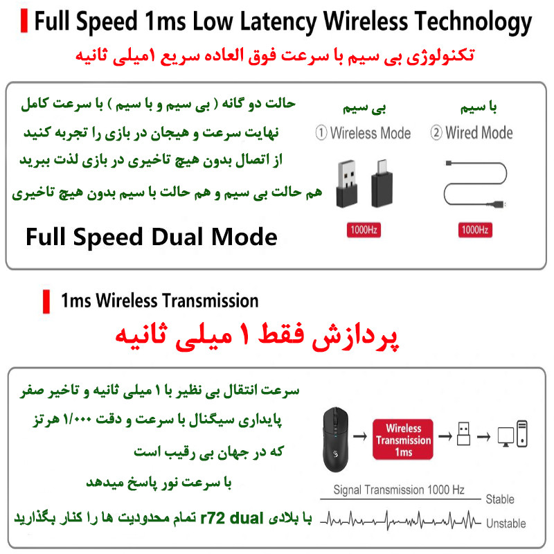 ماوس گیمینگ دوگانه بیسیم و باسیم ای فورتک مدل R72_ULTRA