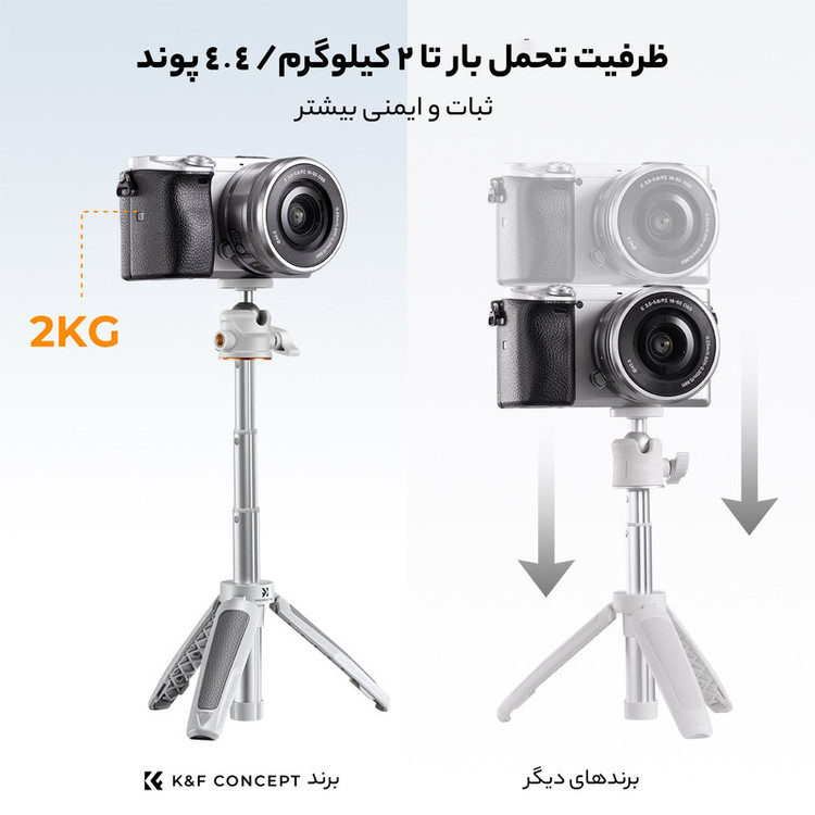 عکاسی سلفی - به عنوان سه پایه برای دوربین های زیر دو کیلو گرم - تولید محتوا - نگهدارنده نور و یا میکروفن