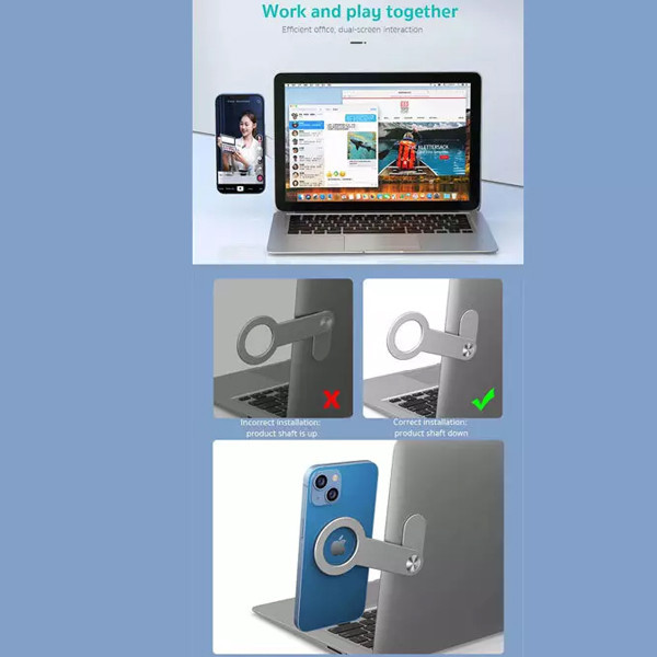 مناسب آیفون 12 و به بعد | تمام گوشی هایی که از قابلیت مگ سیف پشتیبانی میکنند | درصورت استفاده از قاب مگ سیف | امکان چرخش و تنظیم زاویه گیره نگهدارنده | جنس از آلیاژ آلومینیوم | چسب قوی بی ضرر برای بدنه لپ تاپ