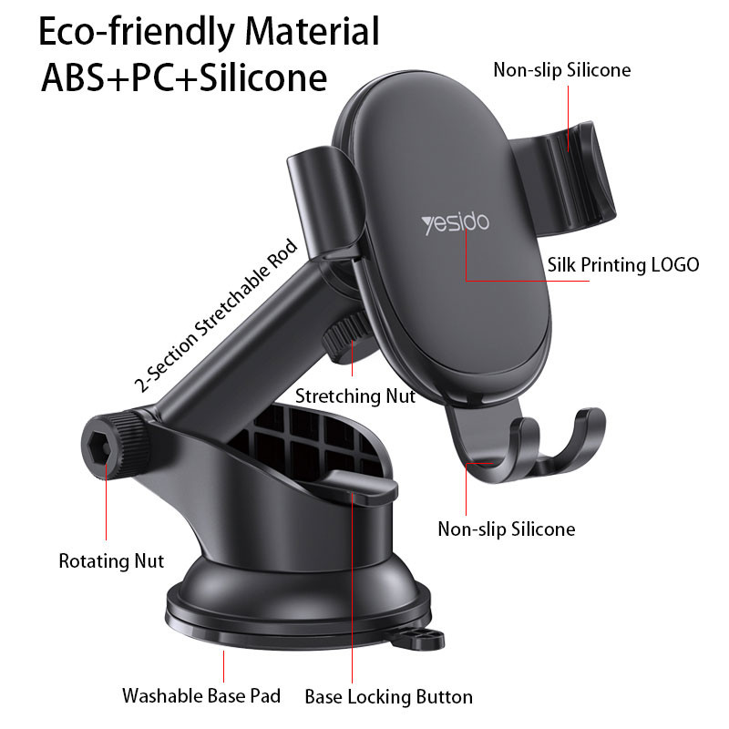نوع پایه نگهدارنده گوشی و تبلتمناسب برای استفاده روی میز , مناسب برای استفاده داخل خودروابعاد10x9x15 میلیمتروزن125 گرممناسب برایانواع گوشی موبایلقابلیتهای دستگاهامکان چرخش 360 درجهرنگمشکی