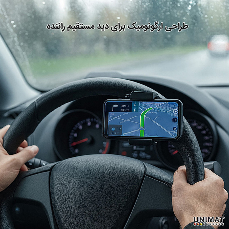 امکان باز شدن گیره بین 60 تا 99 میلی متر | تنظیم زاویه 360 درجه | قابلیت نصب بر روی فرمان خودرو با قطر 2.8 تا 4 سانتی متر | قابلیت نصب بر روی فرمان موتور | قابلیت نصب بر روی فرمان دوچرخه | ضد لرزش