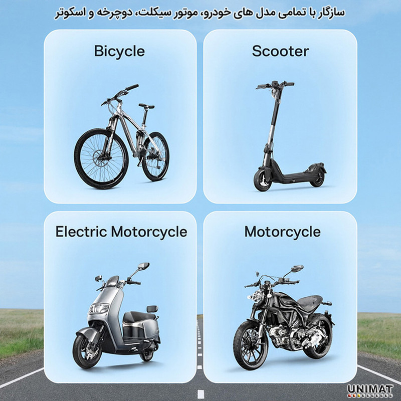 مناسب برای نصب روی فرمان موتور سیکلت , مناسب برای استفاده داخل خودرو , مناسب برای نصب روی فرمان دوچرخه