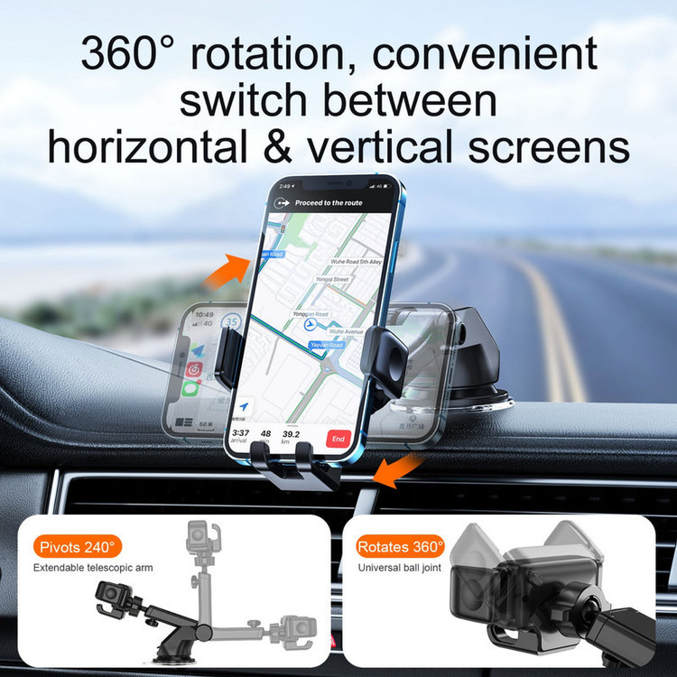 قابل نصب روی داشبورد خودرو سازگار با برند های مختلف موبایل قابلیت چرخش 360 درجه سری و 240 درجه بازو مناسب گوشی های هوشمند تا 110 میلی متر