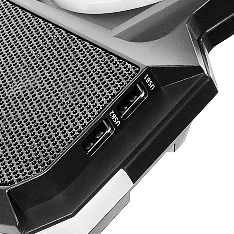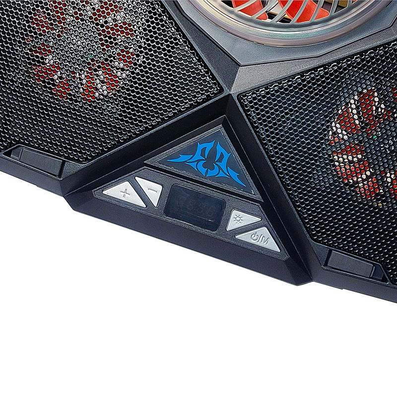 دارای 5 فن پرقدرت دارای LED با 7 حالت نوردهی و پخش نور قوی صفحه نمایش دیجیتال 4 دکمه کنترلی دکمه پاور دوحالته (روشن و خامون دستگاه و فن ها) دارای نگهدارنده گوش موبایل