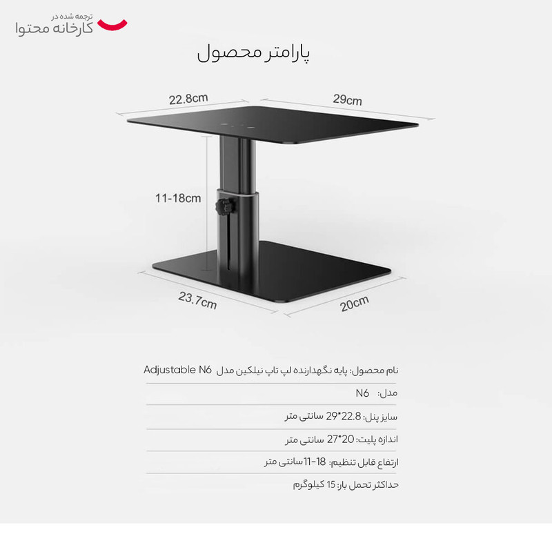قابلیت تنظیم ارتفاع در بازه ی 11 تا 18 سانتی متر تحمل وزن تا 15 کیلوگرم