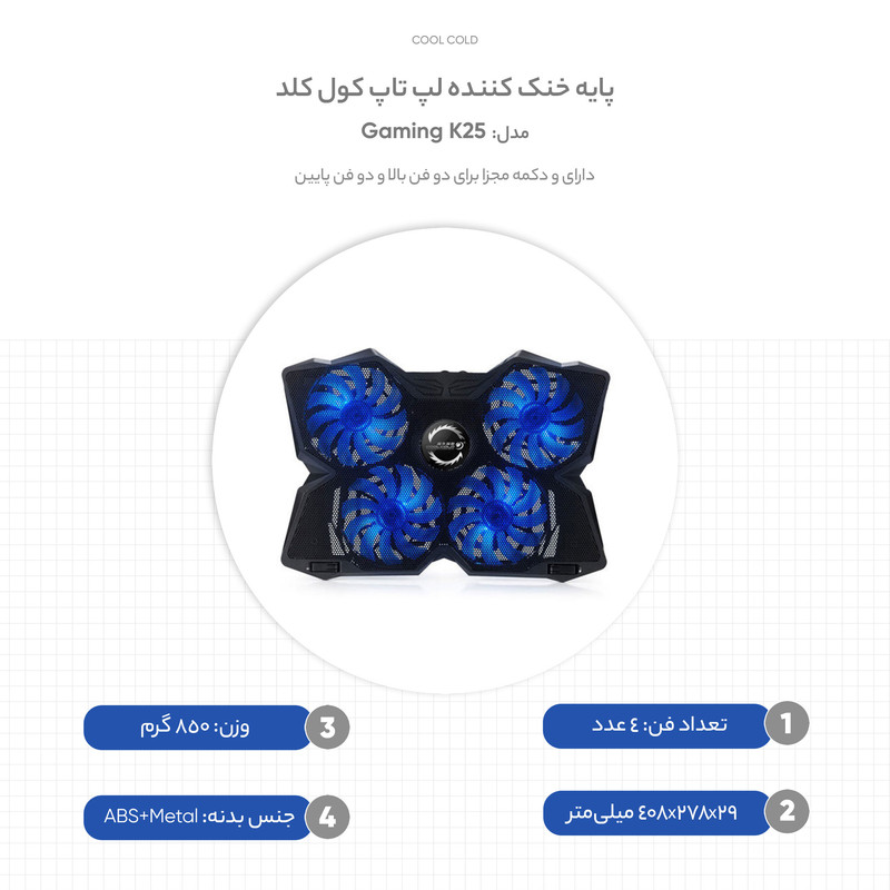 پایه خنک کننده لپ تاپ کول کلد مدل Gaming K25