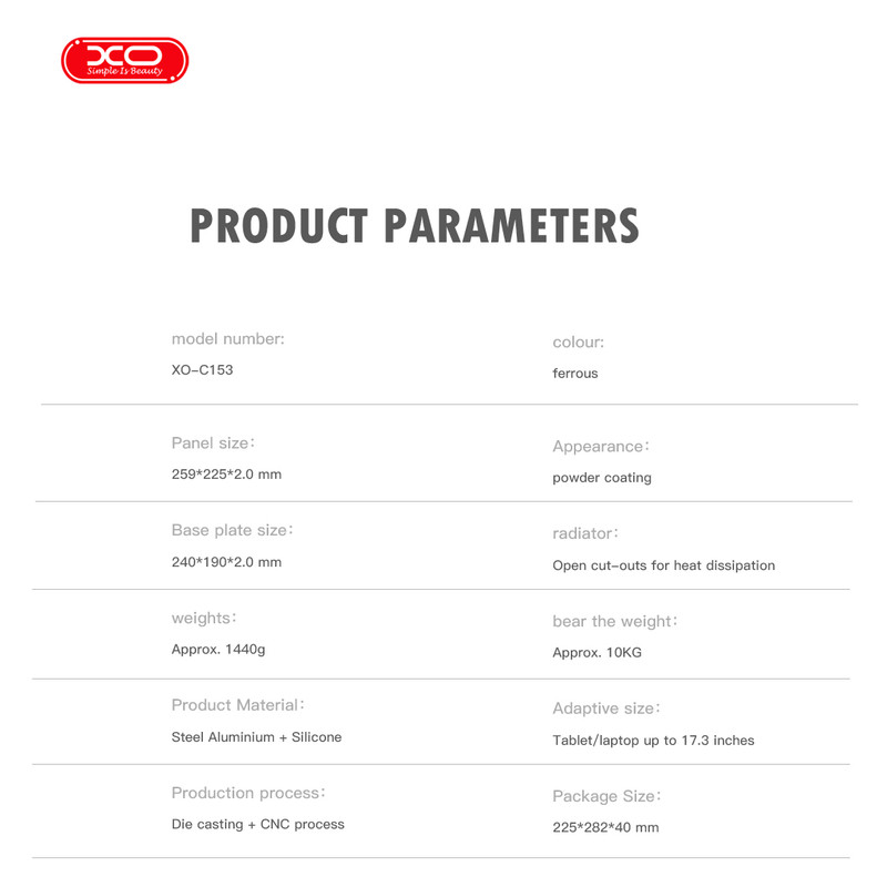 XO C153 یک پایه لپتاپ قابل تنظیم و جمعشونده است که به طور ویژه برای لپتاپهای تا ۱۷.۳ اینچ طراحی شده است. این پایه با ویژگیهای منحصر به فرد خود، تجربه کار با لپتاپ را به سطح بالاتری میبرد.