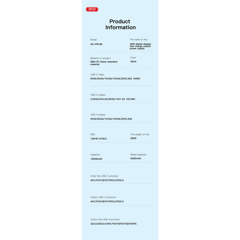 پاوربانک ایکس او مدل PR-90 با ظرفیت 15000 میلی آمپر ساعت