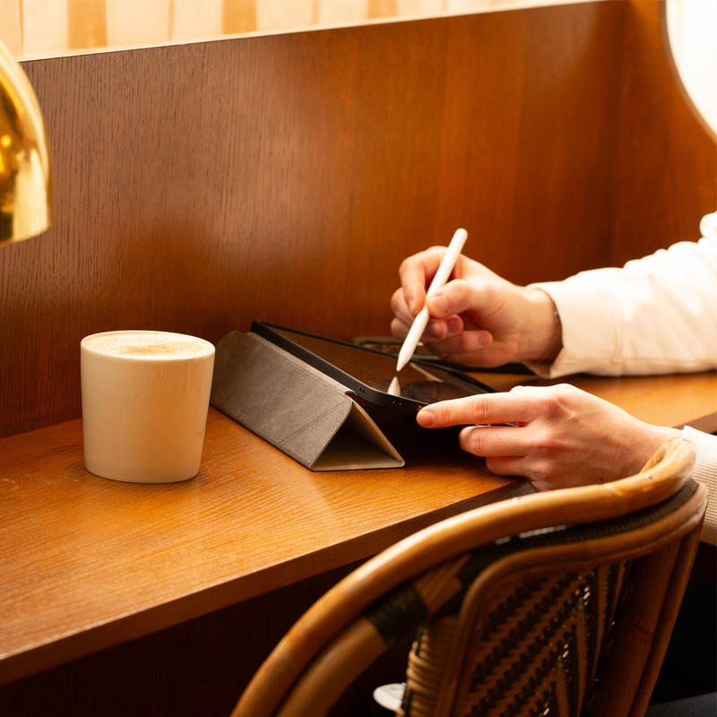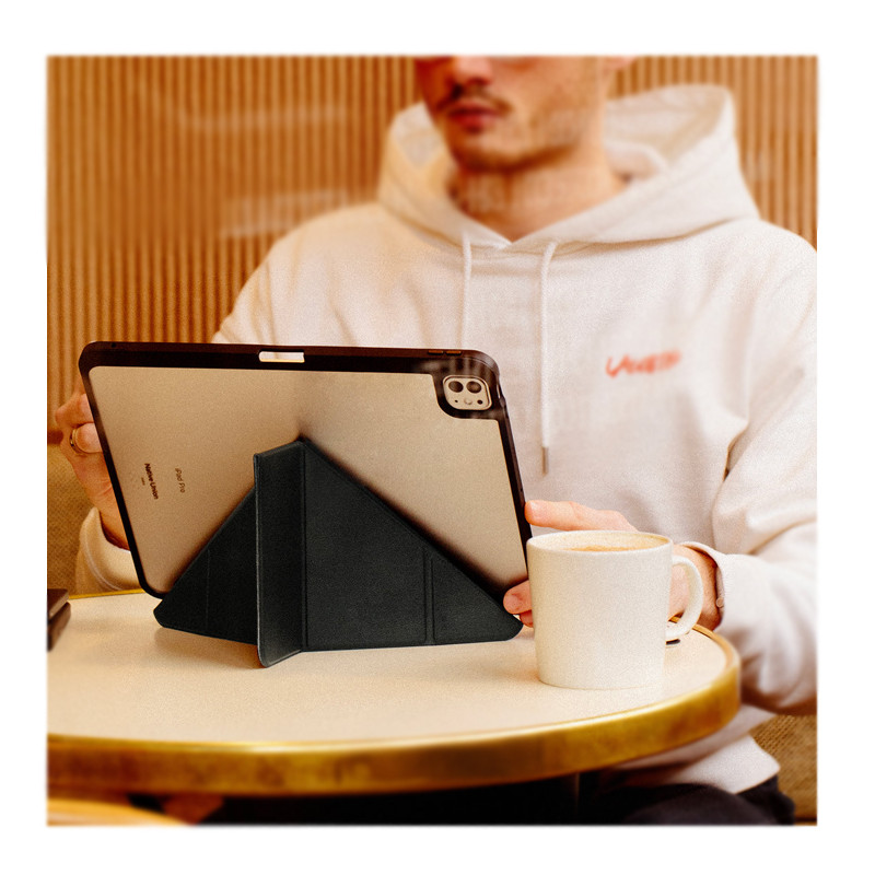 کیف کلاسوری بسیار شیک وبا کیفیت که از جنس " تی پی یو "ساخته شده ،با گارد محکم ضد ضربه با امکان قراردان قلم در داخل گارد .و با امکان استند شدن در دو حالت مختلف ، دارای قفل آهنربایی ، دارای درب هوشمند.که به همراه یک عدد دستمال تمیزکننده نانو به ابعاد 14در 17 سانتی متر تقدیم خریدار می گردد .همچنین این کیف برای ipad Air 13" 2024 مناسب می باشد.