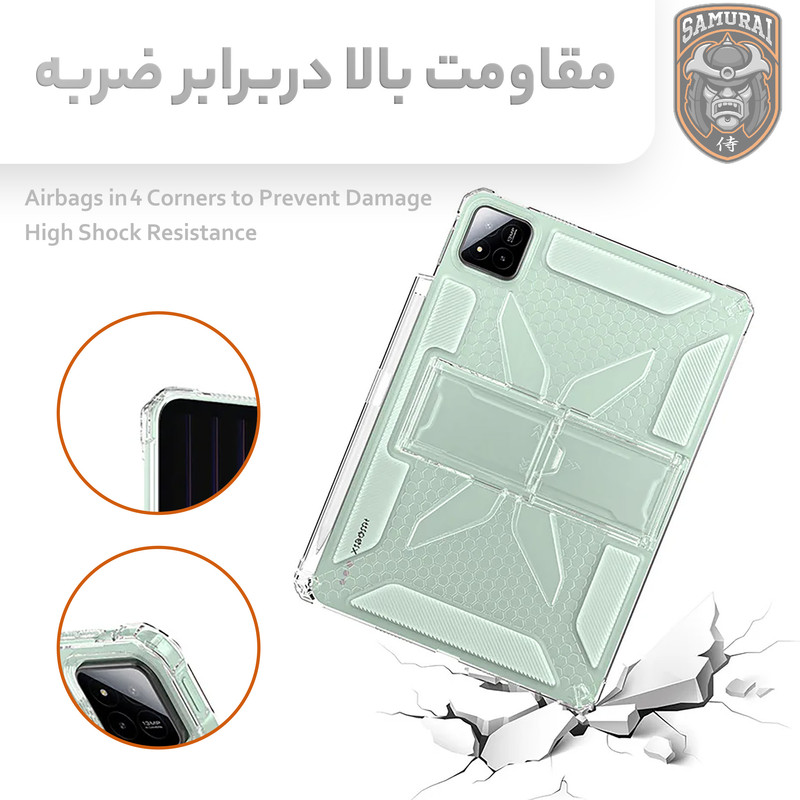 قابلیت تبدیل شدن به استند , انعطاف پذیر , دارای پوشش نرم داخلی , لبه های برجسته برای محافظت صفحه نمایش , لبه های برجسته برای محافظت دوربین