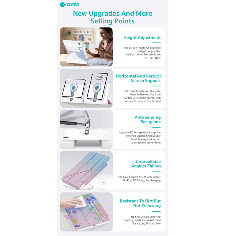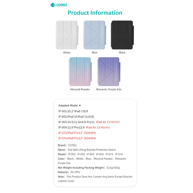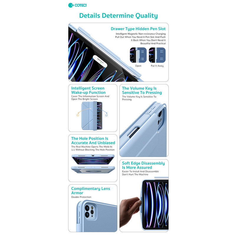 کیف کلاسوری کوتتسی مدل IP-002، انتخابی عالی برای تبلتهای اپل 11 اینچی از جمله Ipad 10 / Ipad 11 (A16) است. این کیف با طراحی خاص و کارآمد، به شما امکان استفاده آسان و محافظت مؤثر از دستگاهتان را میدهد. یکی از ویژگیهای بارز این کیف، پایه بلند شو (Pad Split Lifting Bracket) آن است که قابلیت تنظیم ارتفاع را فراهم میکند. با این ویژگی میتوانید تبلت خود را در زوایای دلخواه قرار دهید و تجربه تماشای بهتری داشته باشید. این کیف به شما امکان میدهد تا تبلت را به راحتی در حالت افقی و عمودی بچرخانید و در هر موقعیتی از آن استفاده کنید. کیف کلاسوری IP-002 همچنین دارای طراحی ضد خمیدگی (Anti-Bending Backplane) است که امنیت بیشتری برای تبلت فراهم میآورد و ماندگاری آن را افزایش میدهد. بدون نیاز به جدا کردن یا چرخاندن کیف، میتوانید به سادگی از تبلت خود استفاده کنید. طراحی محل مخفی قلم (Drawer Type Hidden Pen Slot) نیز از دیگر امکانات این کیف است. این محل به شما این امکان را میدهد تا قلم خود را همیشه در دسترس داشته باشید. همچنین، دکمههای ولوم گوشی به راحتی قابل دسترسی و حساس به فشار هستند، بنابراین با سهولت میتوانید از تنظیمات صدای تبلت خود استفاده کنید. کیف کوتتسی با استفاده از آهنربای قوی خود، تبلت شما را به طور محکم نگه میدارد و خطر افتادن دستگاه را به حداقل میرساند. همچنین، قابلیت چرخش 360 درجهای به شما آزادی عمل بیشتری میدهد تا در هر زاویهای تبلت خود را قرار دهید. با خرید کیف کلاسوری کوتتسی مدل IP-002 از دیجیکالا، شما یک محافظ عالی و کاربردی برای تبلت خود به دست میآورید. این کیف با بالاترین کیفیت و امکانات متنوع، بهترین انتخاب برای کسانی است که به دنبال حفاظت و کارایی تبلتشان هستند. فرصت را از دست ندهید و همین حالا کیف کلاسوری کوتتسی را تهیه کنید!