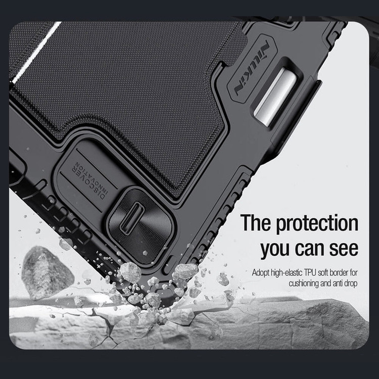 دارای کیبورد , درب جهت محافظت لنز , لبه های برجسته برای محافظت صفحه نمایش , لبه های برجسته برای محافظت دوربین , انعطاف پذیر