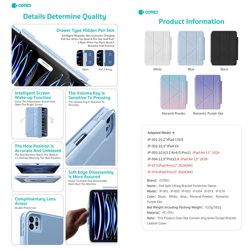 کیف کلاسوری کوتتسی مدل IP-003، انتخابی عالی برای تبلتهای اپل 11 اینچی از جمله Air4، Air5، Pro11 و iPad Air 2024 است. این کیف با طراحی خاص و کارآمد، به شما امکان استفاده آسان و محافظت مؤثر از دستگاهتان را میدهد.