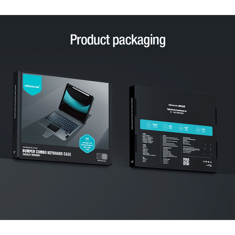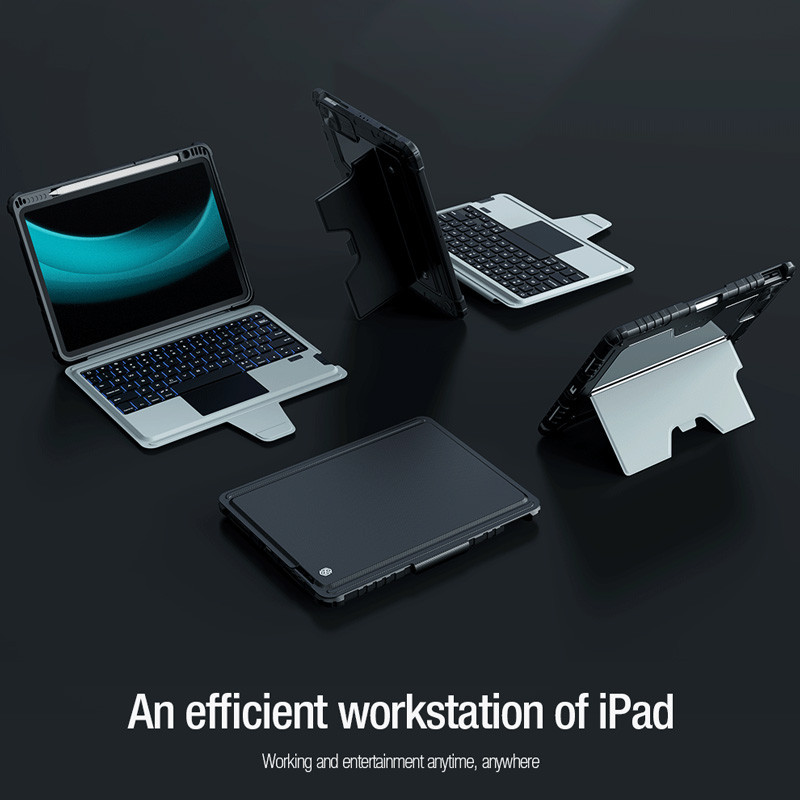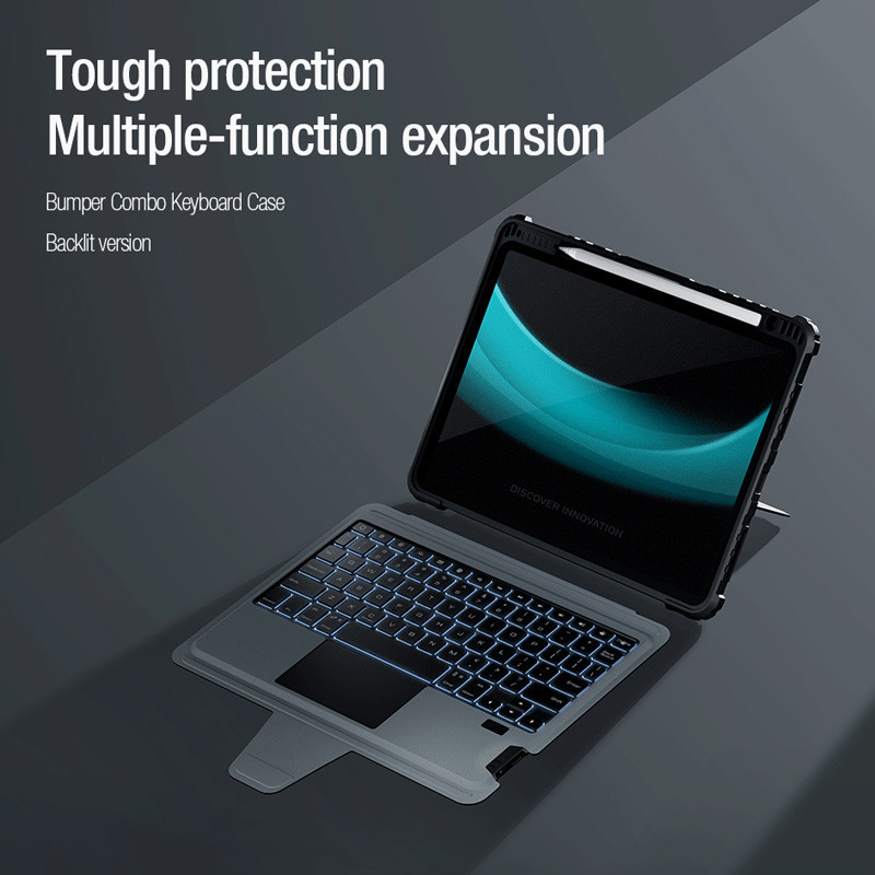 کیف کلاسوری کیبورد دار نیلکین مدل Bumper Combo Backlit Keyboard مناسب برای تبلت اپل iPad Air 11 2024 / Air 10.9 2022 / Air 4 / Air 5 / Air 6 / Air 2020 / Ipad Pro 11 2020 / 2021 / 2022