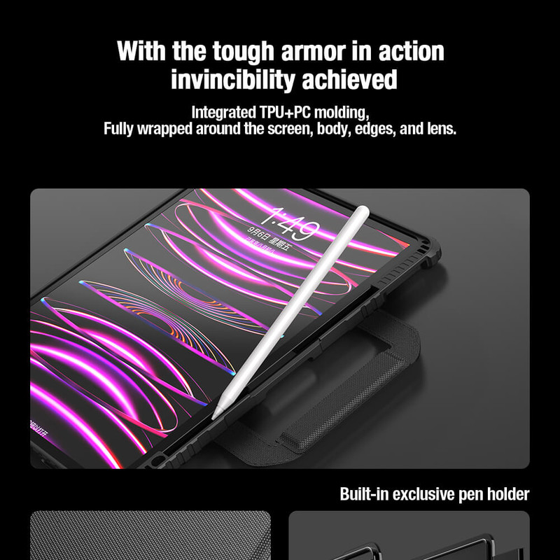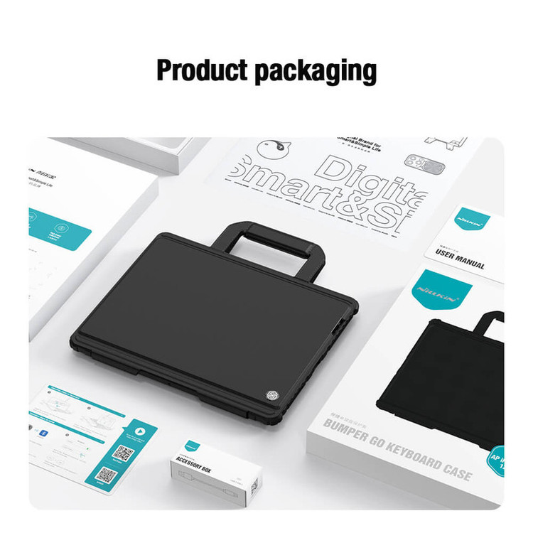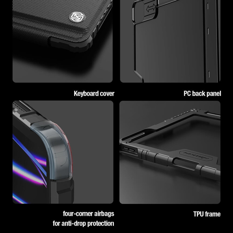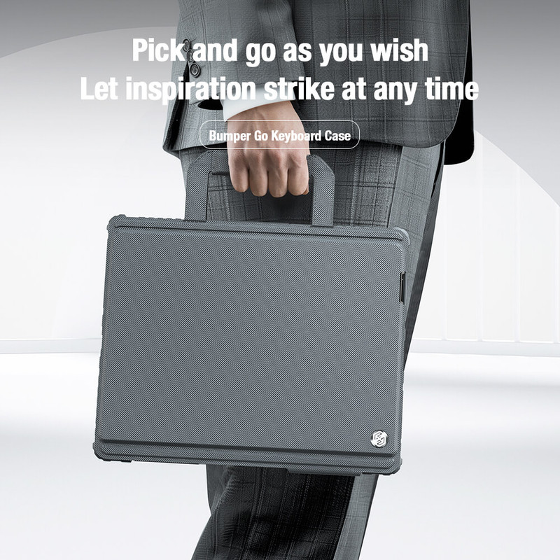 کیف کلاسوری کیبورد دار نیلکین مدل Bumper Go Keyboard مناسب برای تبلت اپل iPad Air 13 2024 / iPad Pro 12.9 2022 / 2021 / 2020