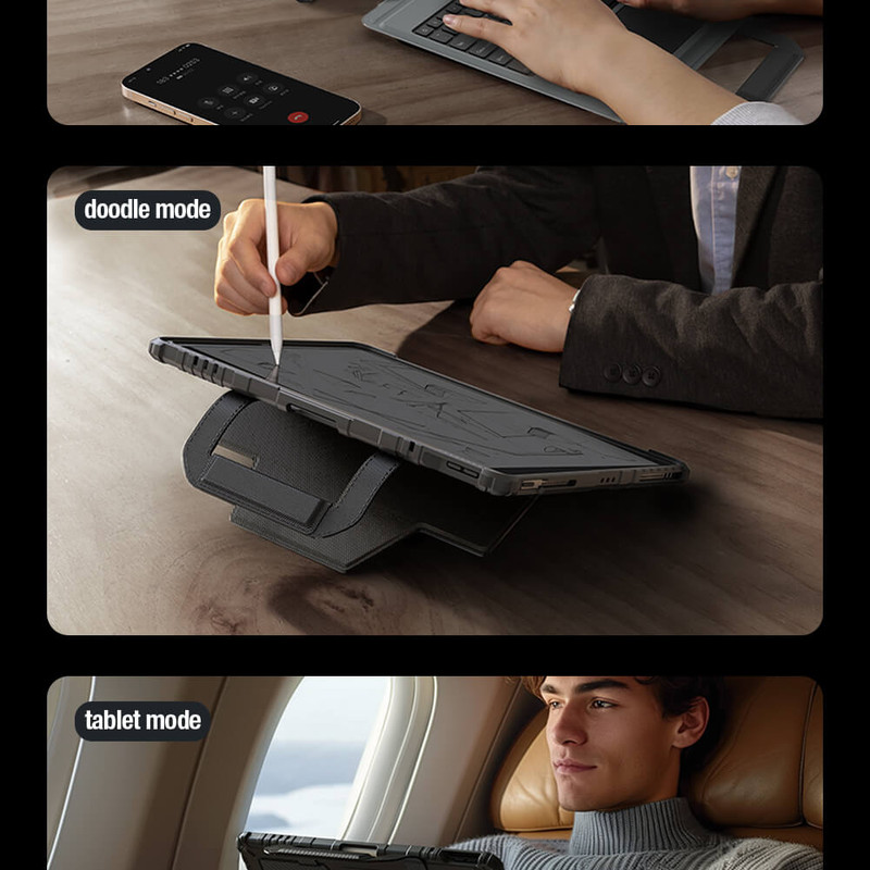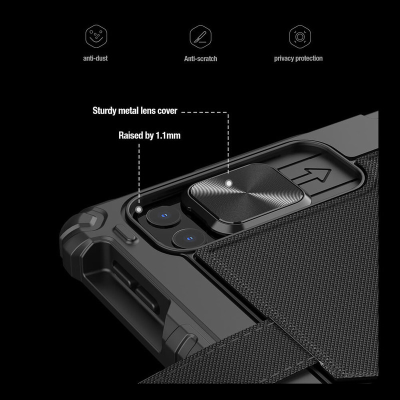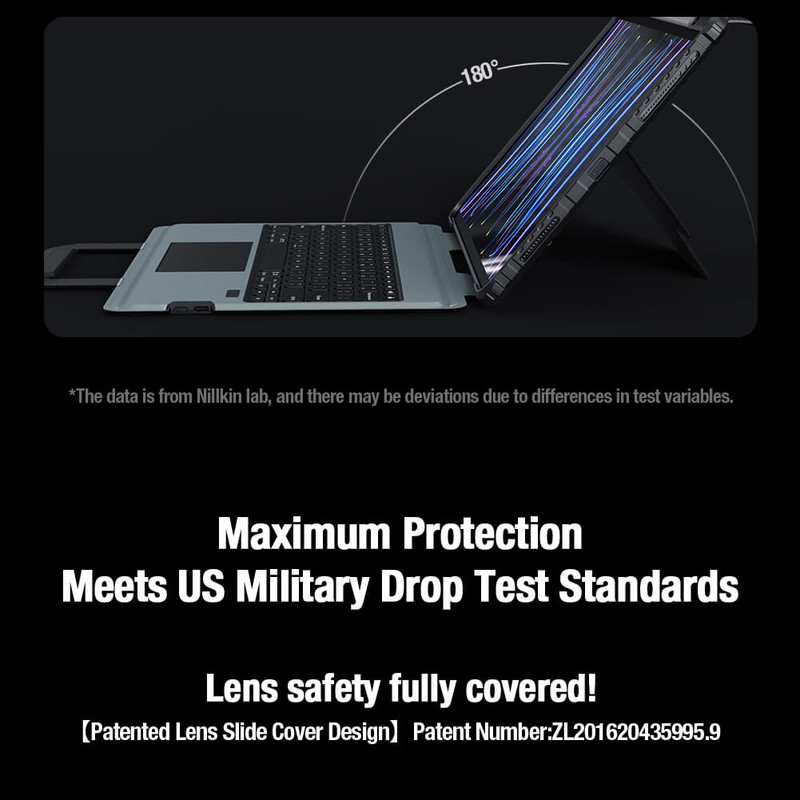 لبه های برجسته برای محافظت صفحه نمایش , لبه های برجسته برای محافظت دوربین , دارای کیبورد , قابلیت تبدیل شدن به استند , درب جهت محافظت لنز