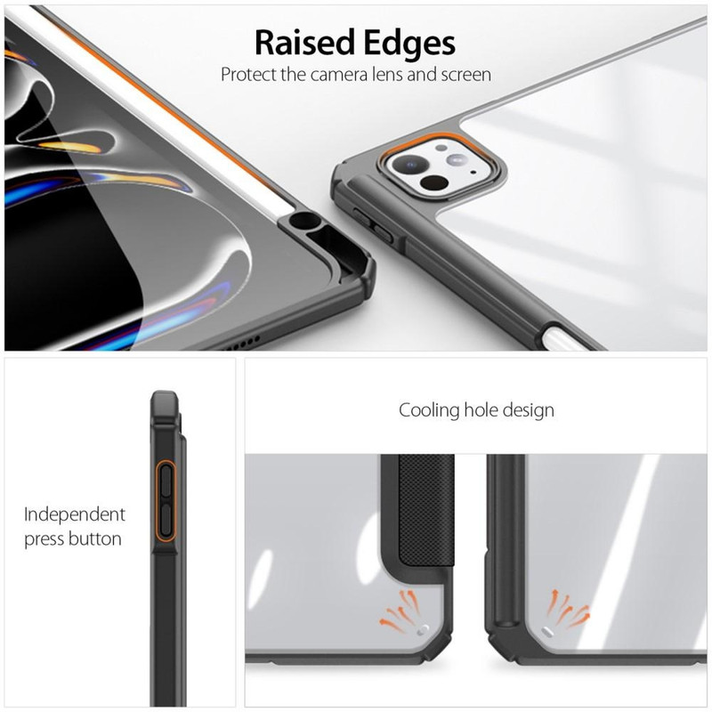 قابلیت تبدیل شدن به استند , انعطاف پذیر , دارای پوشش نرم داخلی , لبه های برجسته برای محافظت صفحه نمایش , لبه های برجسته برای محافظت دوربین