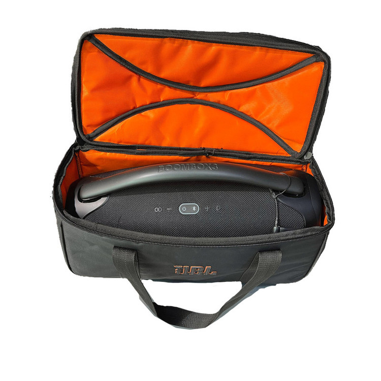 کیف حمل اسپیکر جی بی ال مناسب برای اسپپیکر JBL BOOMBOX 3 و boombox 2 و boombox 1 که به دو صورت قابل حمل میباشد هم به صورت دستی و هم به صورت دوشی ار جمله دیگر نکات این کیف مقاوم بودن در برابر خط و خش و نفوذ رطوبت به اسپیکر می باشد