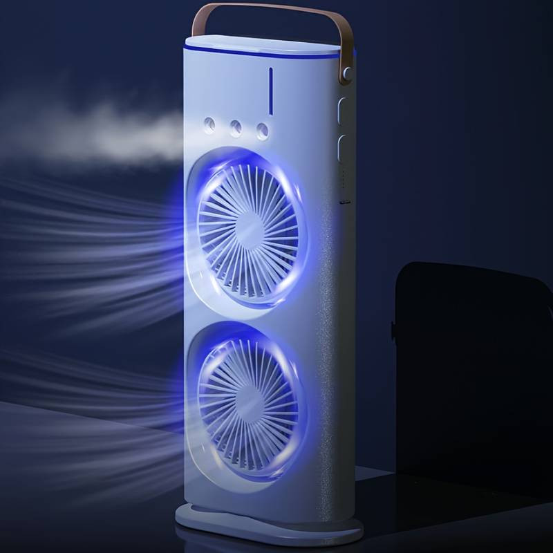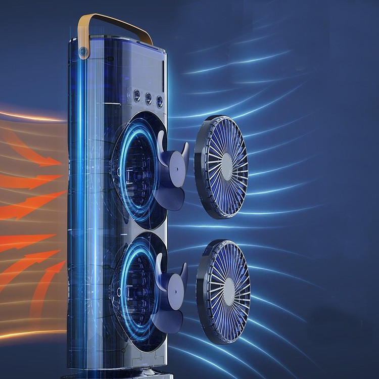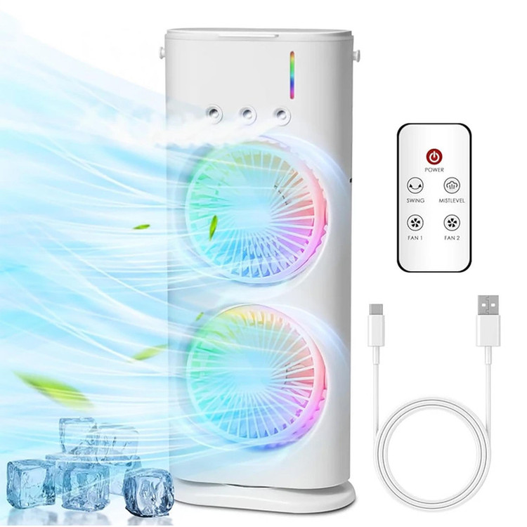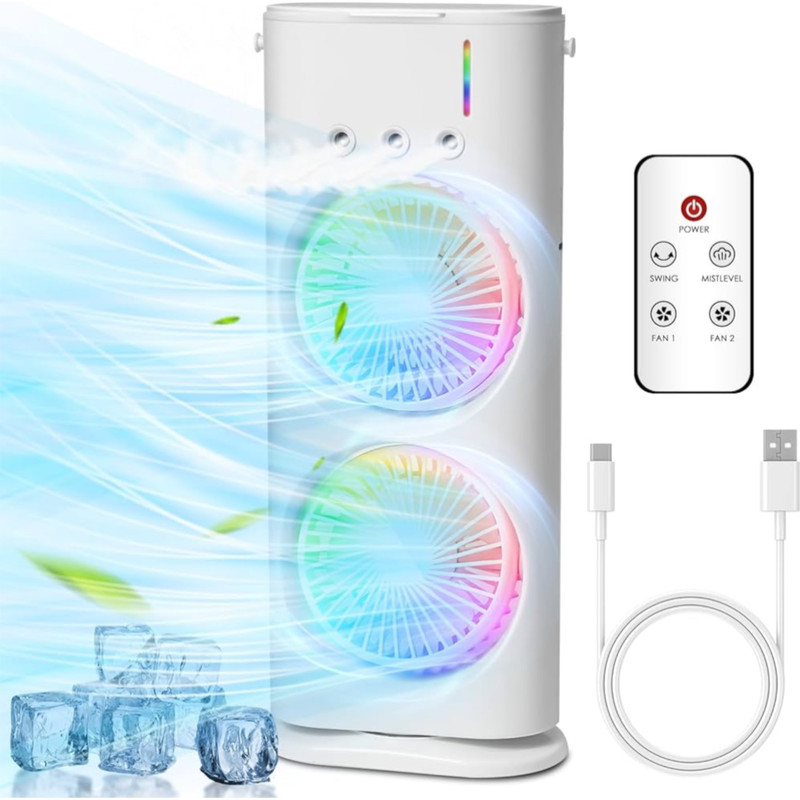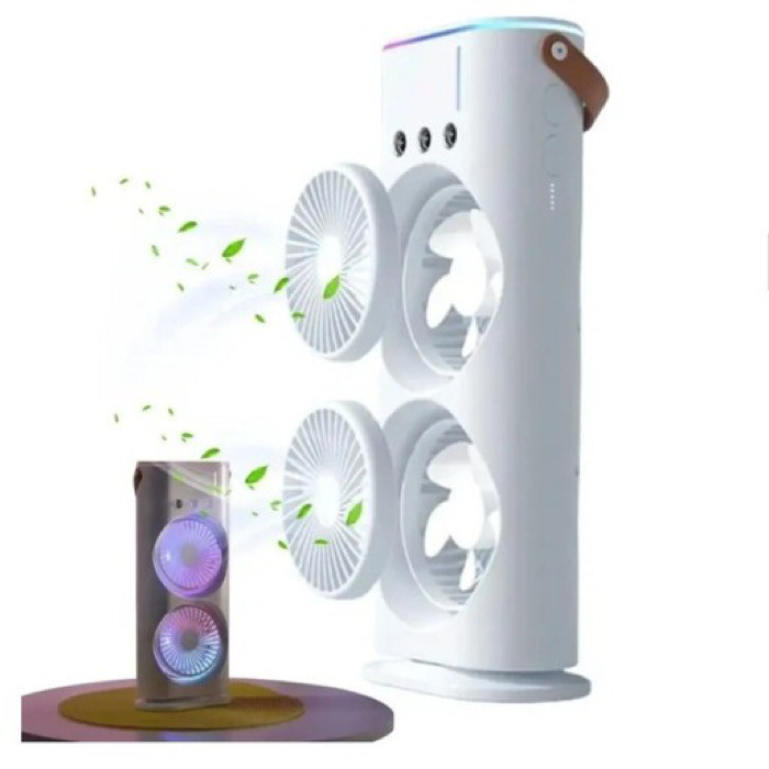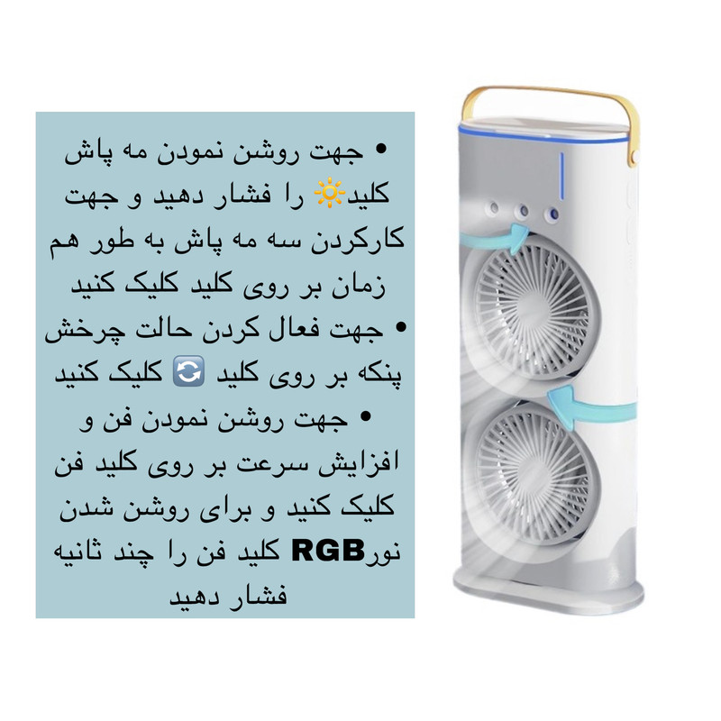 نور پردازی RGB- دارای مه پاش- قابلیت چرخش- زاویه شیب قابل تنظیم- دارای دو عدد فن- دارای 3 سطح سرعت-