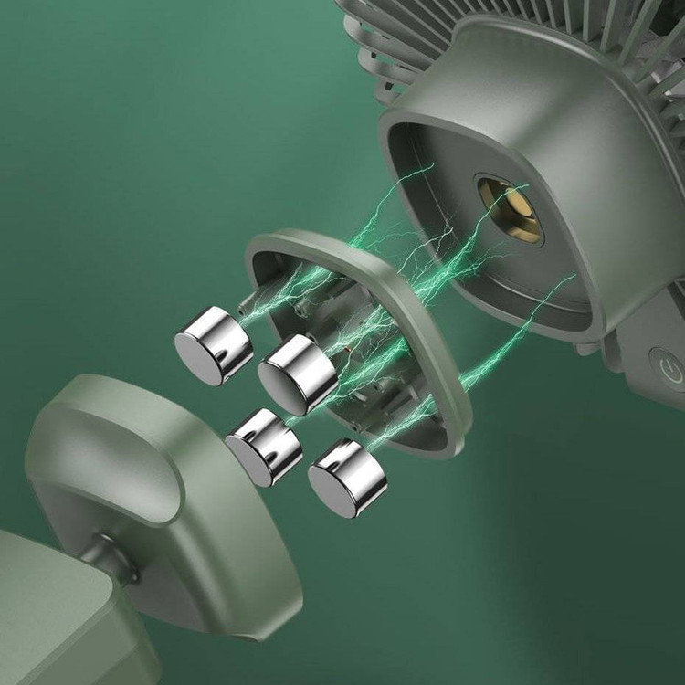 ابعاد: 12.9×12.9×14 سانتی متر / امکان تنظیم 360 درجه ای خاصیت مگنتی با امکان شارژ بی سیم / جنس بدنه: ABS + PC / قابلیت تنظیم میزان باددهی در 2 حالت / بهرهمندی از باتری 1000mAh