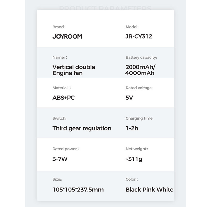 پنکه رومیزی شارژی جویروم JoyRoom Vertical Double Engine Fan