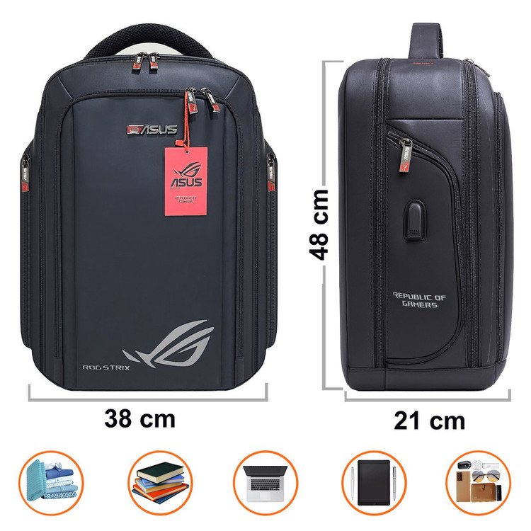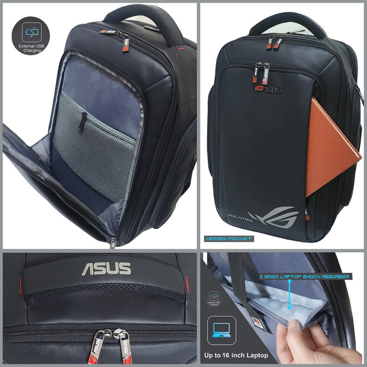 دارای پورت USB , مقاومت در برابر آب , ضربهگیر حبابدار در محفظه لپتاپ , قابلیت نصب روی دسته چمدان , دارای کاور ضد آب