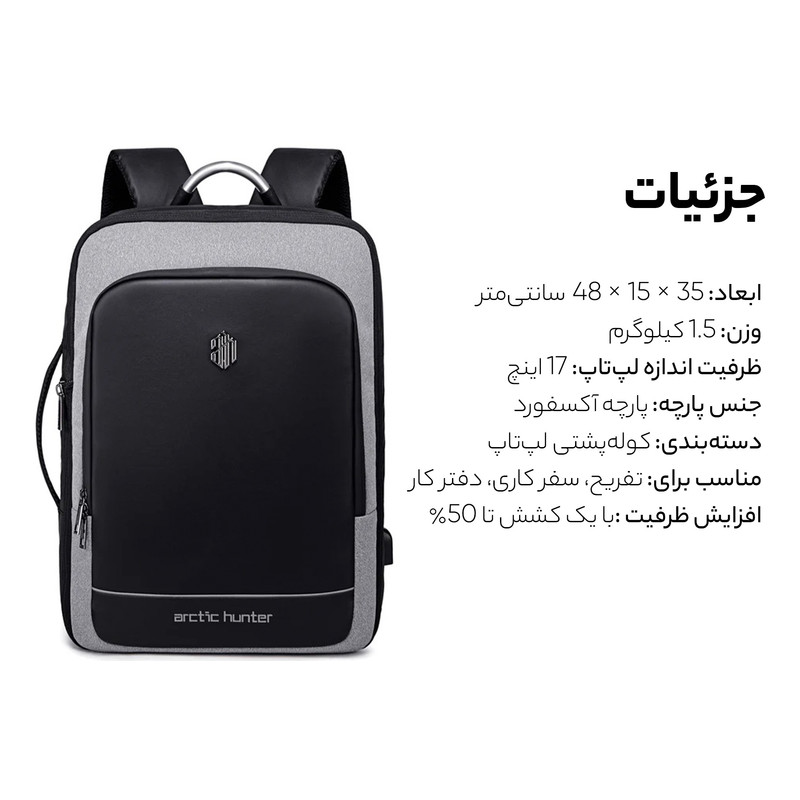 کوله پشتی لپ تاپ آرتیک هانتر مدل B00227L مناسب برای لپ تاپ 14.1 تا 15.6 اینچی