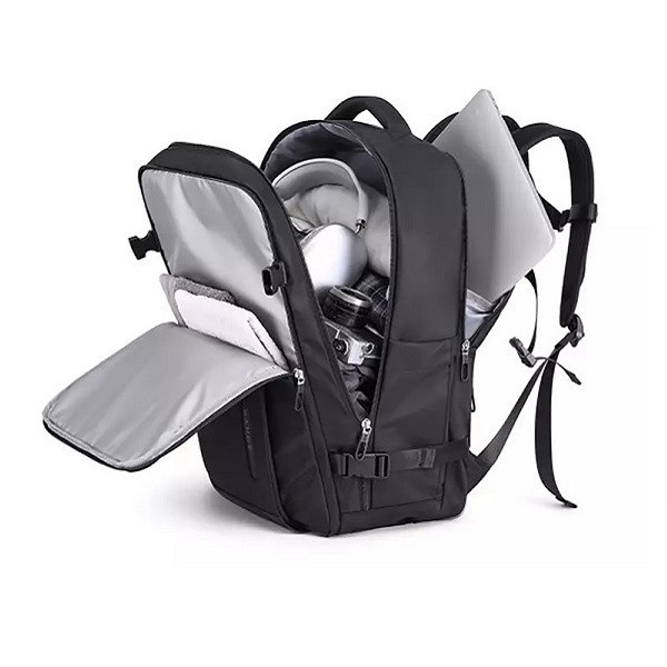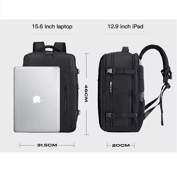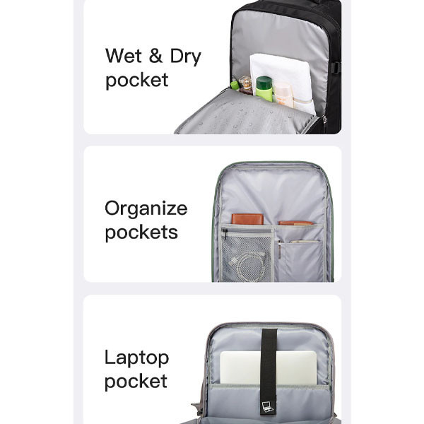 تعداد جیب:دو محفظه بزرگ با جیب های متعدد تعداد بند:2بند مقاوم در برابر سایش طراحی کمربند نایلونی برای قرار دادن روی دسته چمدان ضد تعریق دارای لایه اسفنجی قابل تنفس دارای درگاه یواس بی برای شارژ جیب مخفی در قسمت پشت فرم بدنه نرم ضدآب
