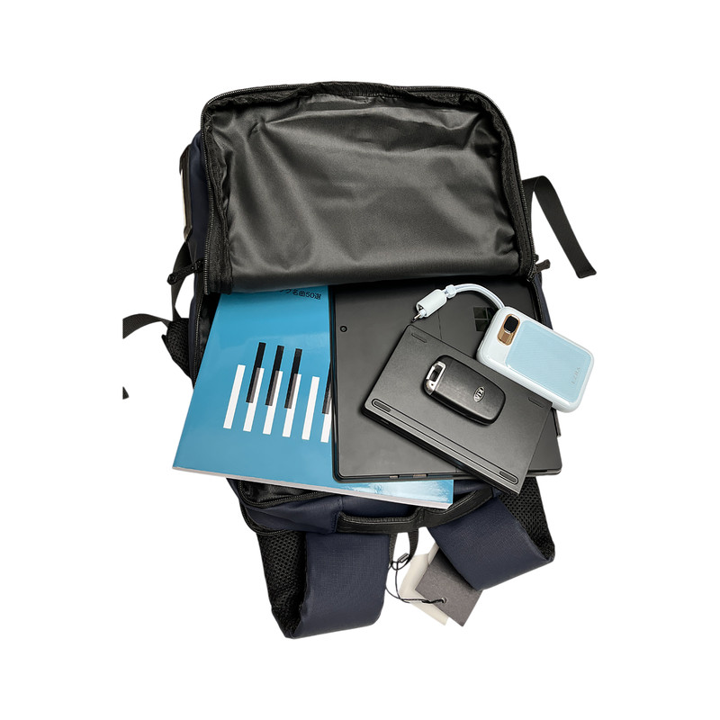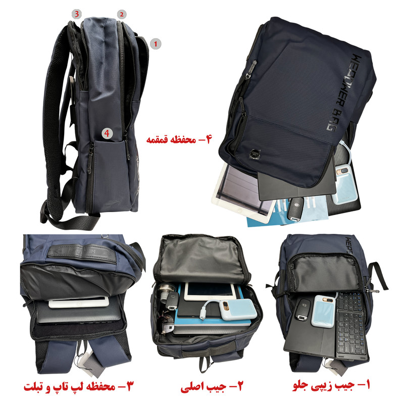 جیب کارت ویزیت , دارای دو محفظه اصلی , محفظه نگهداری تبلت , محفظه کابل و شارژر , جای قمقمه