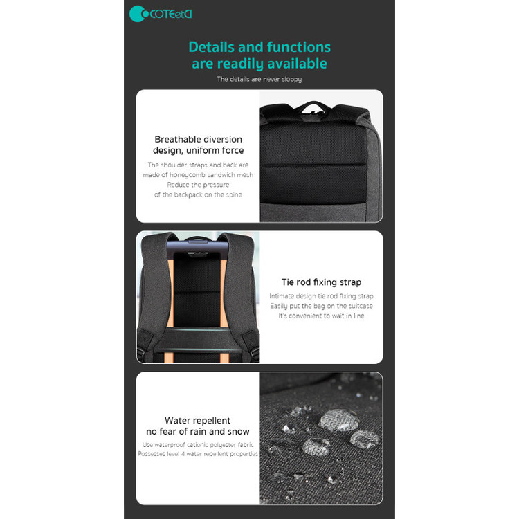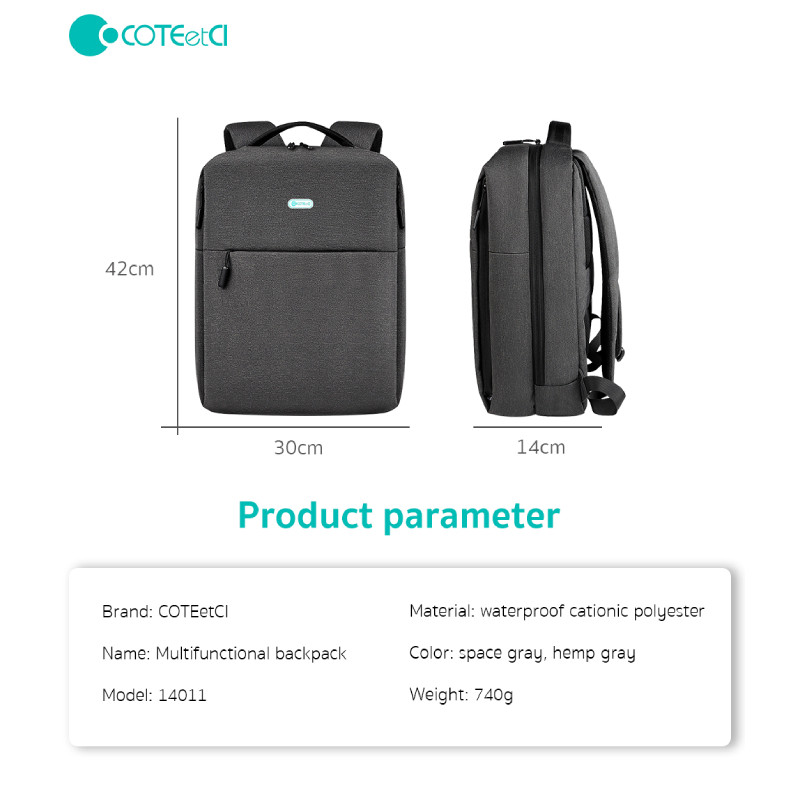 کوله پشتی لپ تاپ کوتتسی مدل NoteBook Multi-Functional Backpack Hemp 14011-HG مناسب برای لپ تاپ 16 اینچی