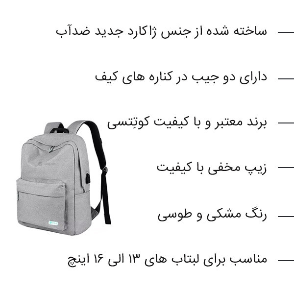 برند معتبر کوتتسی - دارای سه جیب داخلی - یک جیب زیپ دار - دو جیب کوچک خارجی - زیپ های با کیفیت - پارچه نیوژاکارد - مقاوم در برابر رطوبت