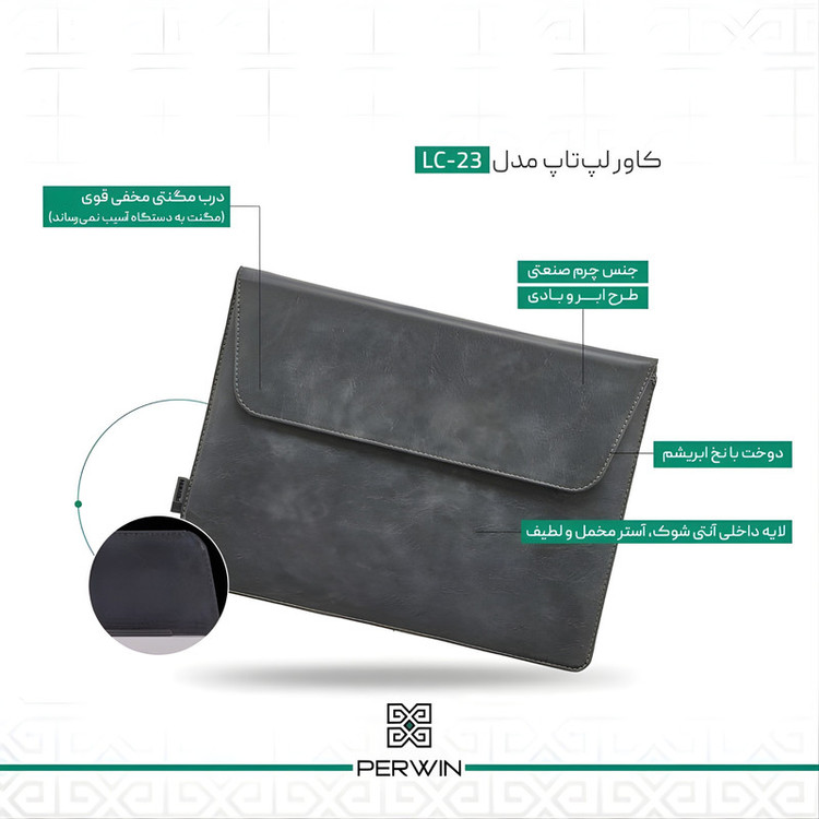 کاور لپ تاپ پِروین مدل LC-23 مناسب برای سرفیس لپ تاپ 3.4.5 13.5 اینچی به همراه کیف لوازم جانبی