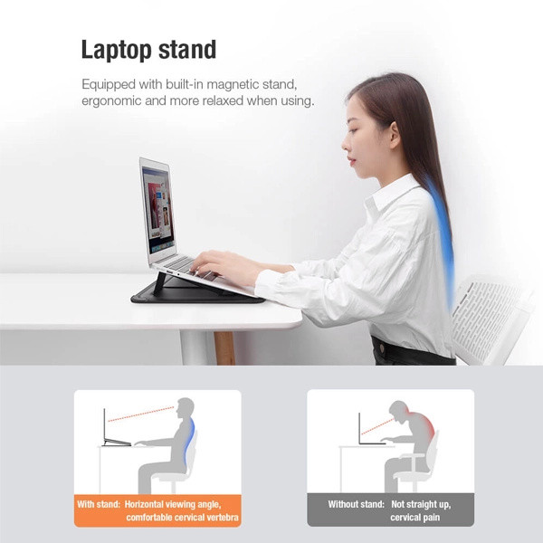 قابلیت استند شدن در 2 حالت / قابلیت پد مچ دست شدن درب کیف / ضربه گیر در گوشهی قسمت پایینی
