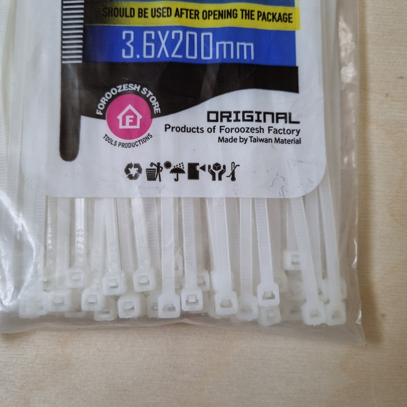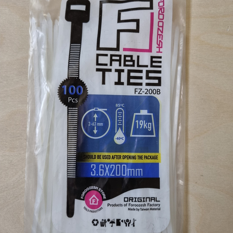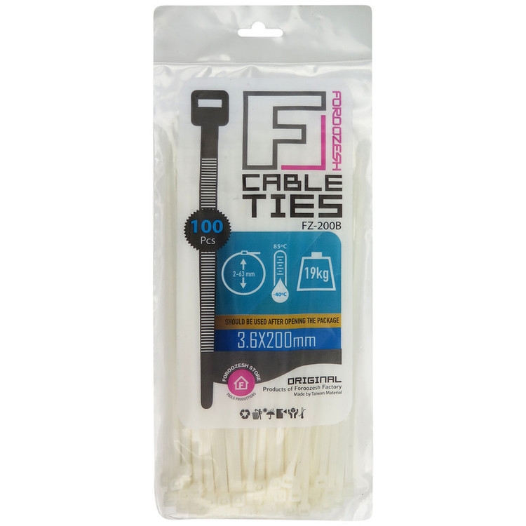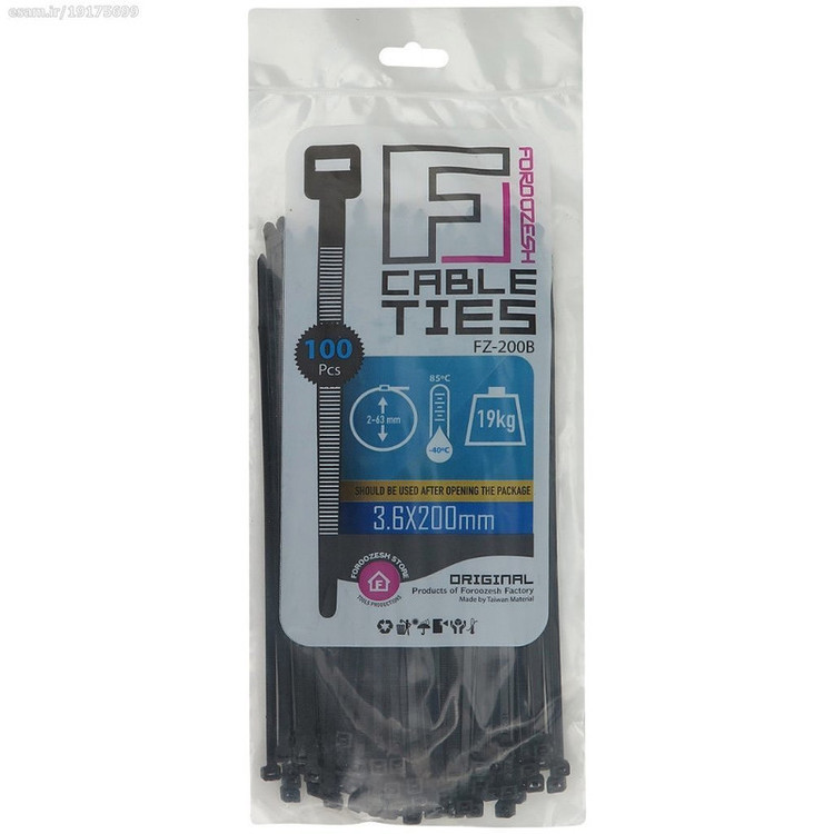 قابلیت تحمل وزن تا 19 کیلو گرم قابل استفاده در دمای بین منفی 40 تا 85 درجه سانتیگراد ابعاد خود بست 3.6 × 200 میلی متر مجموعه 100 عددی برند فروزش