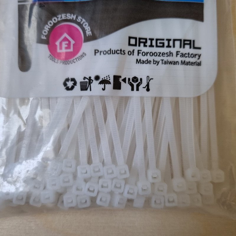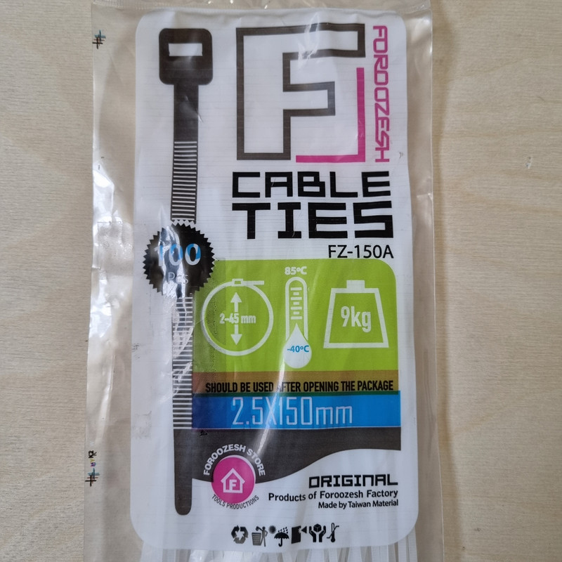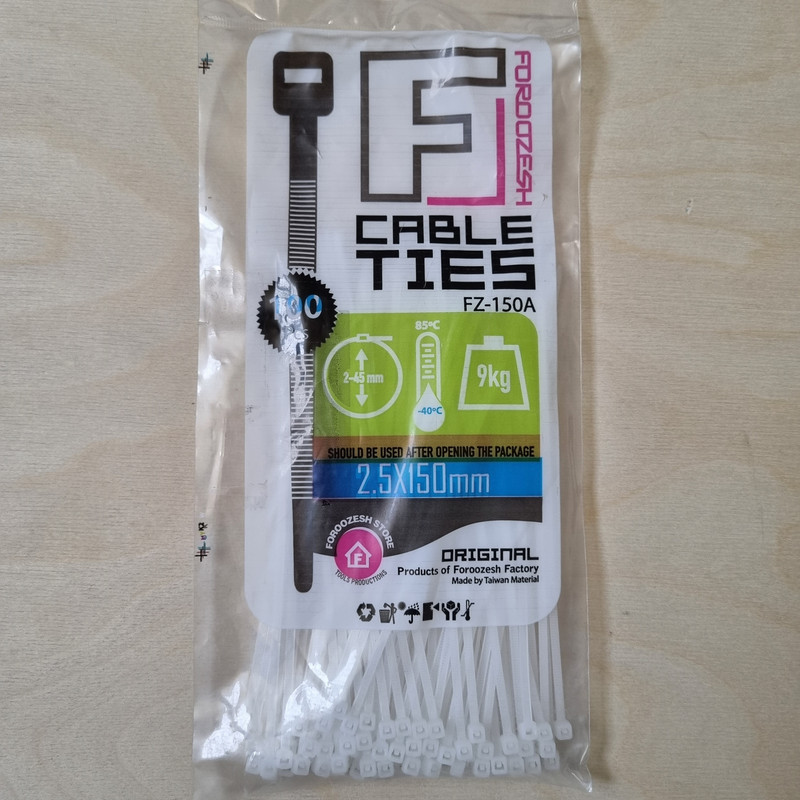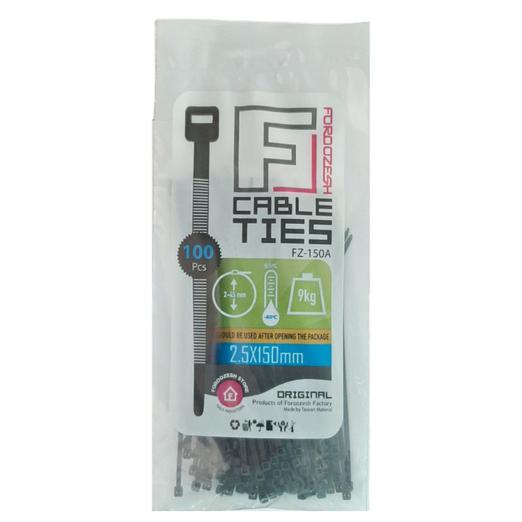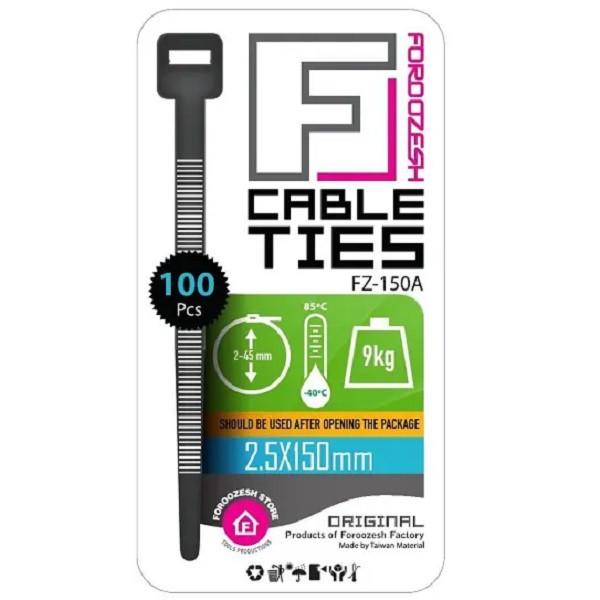 قابلیت تحمل وزن تا 9 کیلو گرم قابل استفاده در دمای بین منفی 40 تا 85 درجه سانتیگراد ابعاد خود بست 2.5 × 150 میلی متر مجموعه 100 عددی برند فروزش