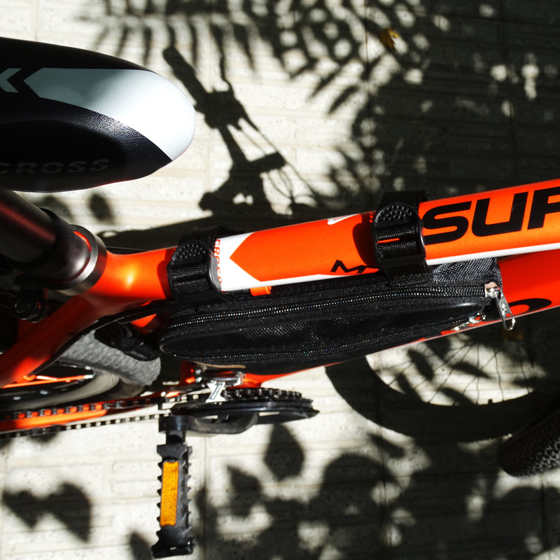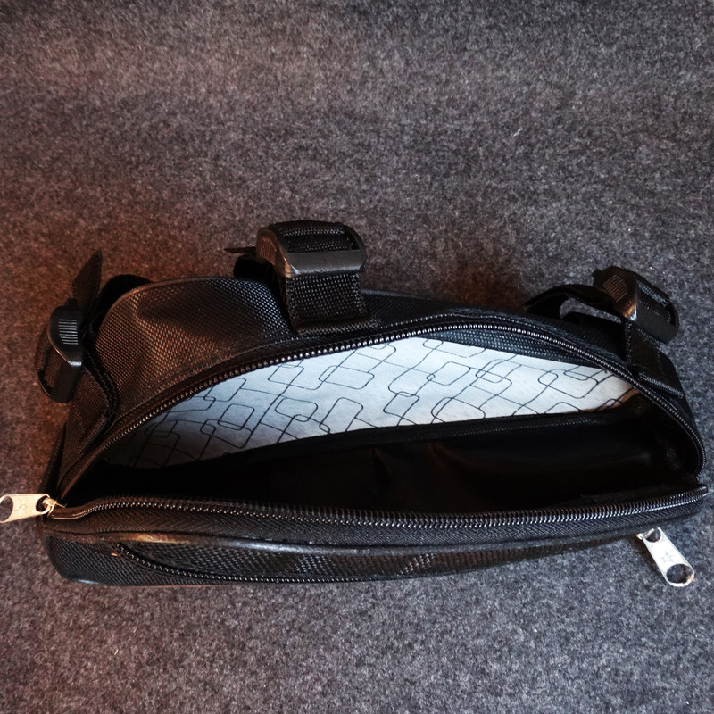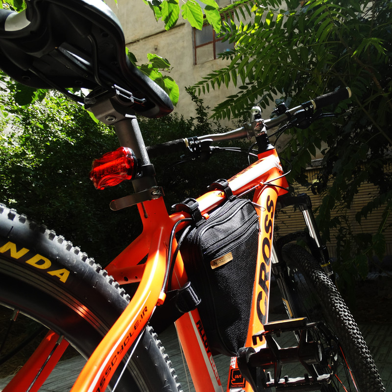 ساخته شده از برزنت مقاوم رویه ضد آب و ضد خش دارای 3 گیره اتصال مقاوم سازی شده جهت اتصال محکم تر و کج نشدن در پیچ ها وزن سبک (حدود 110 گرم) مناسب برای اتصال به زیر تنه دوچرخه فضای زیاد و جادار قابل استفاده برای ابزار دوچرخه، گوشی موبایل، خوراکی و...